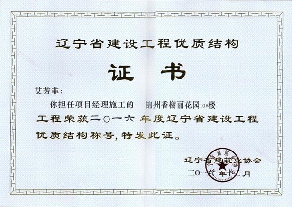 荣获二00六年度辽宁省建设工程优质结构称号